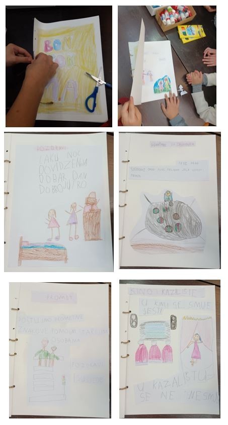 Nakon pozdrava dobrodošlice od koordinatorice knjižnice gospođe Pavice, slijedio je susret s autoricom. U opuštenom razgovoru o bontonu, čitanju bonton pjesmica iz istoimene slikovnice učenici su pokazali koliko znaju o lijepom ponašanju i što smatraju važnim i pristojnim u raznim prigodama. Druženje se nastavilo razgovorom o tome kako nastaje slikovnica i kako će učenici sami izraditi svoj mali Bonton priručnik. Prolazili su kroz proces stvaranja teksta, ilustracija, pripreme za tisak, tiskanja i na kraju uvezivanja. Naravno, sve su to radile vrijedne ruke učenika koji su se kroz radionicu upoznali s glavnim elementima stvaranja slikovnice.